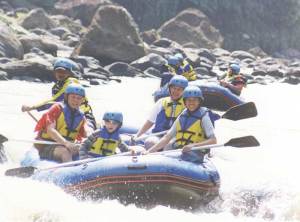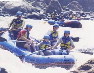 Lucu! Baik ketika pacaran maupun setelah menikah, istriku selalu menolak ketika kuajak arung jeram, namun sekarang dia benar-benar menikmati pengarungan pertamanya. Mungkin di dalam hatinya dia menyesal, kenapa selalu menolak ajakanku? Mungkin sekarang dia mulai menyadari, kenapa aku begitu suka menjelajah alam? Hati jailku sich sudah membuat rencana, bulan depan akan mengajak anak istriku ikut camping sambil merayakan ulang tahun Wisely di camping ground. Kalau rencana itu berjalan lancar, maka arung jeram akan menjadi salah satu bentuk rekreasi kami, 1 atau 2 tahun kemudian, kami akan mulai mendaki gunung.