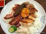 Pesanan kami datang. Satu piring ayam rebus, satu piring bebek panggang dan satu piring babi panggang campur babi merah. Saya lalu menambah pesanan dengan satu piring ayam rebus dan bebek panggang serta menanyakan kepada kiem dan daniel mau nasi atau kwetiau, bihun, mie goreng? Kerna mereka bilang terserah, maka saya pun memesan menu istimewa yang biasa saya dan istri waktu pacaran dulu makan yang merupakan keistimewaan restoran itu. Kwetiau goreng.