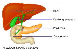 Apabila anda perhatikan gambar tersebut di atas maka nampak gamblang sekali bahwa empedu mendapat pasokan dari hati dan memberi pasokan ke Duodenum alias USUS HALUS. Empedu hanya punya saluran ke HATI dan USUS halus. Menurut kesaksian Encim Sarah Yenny, inilah yang terjadi: